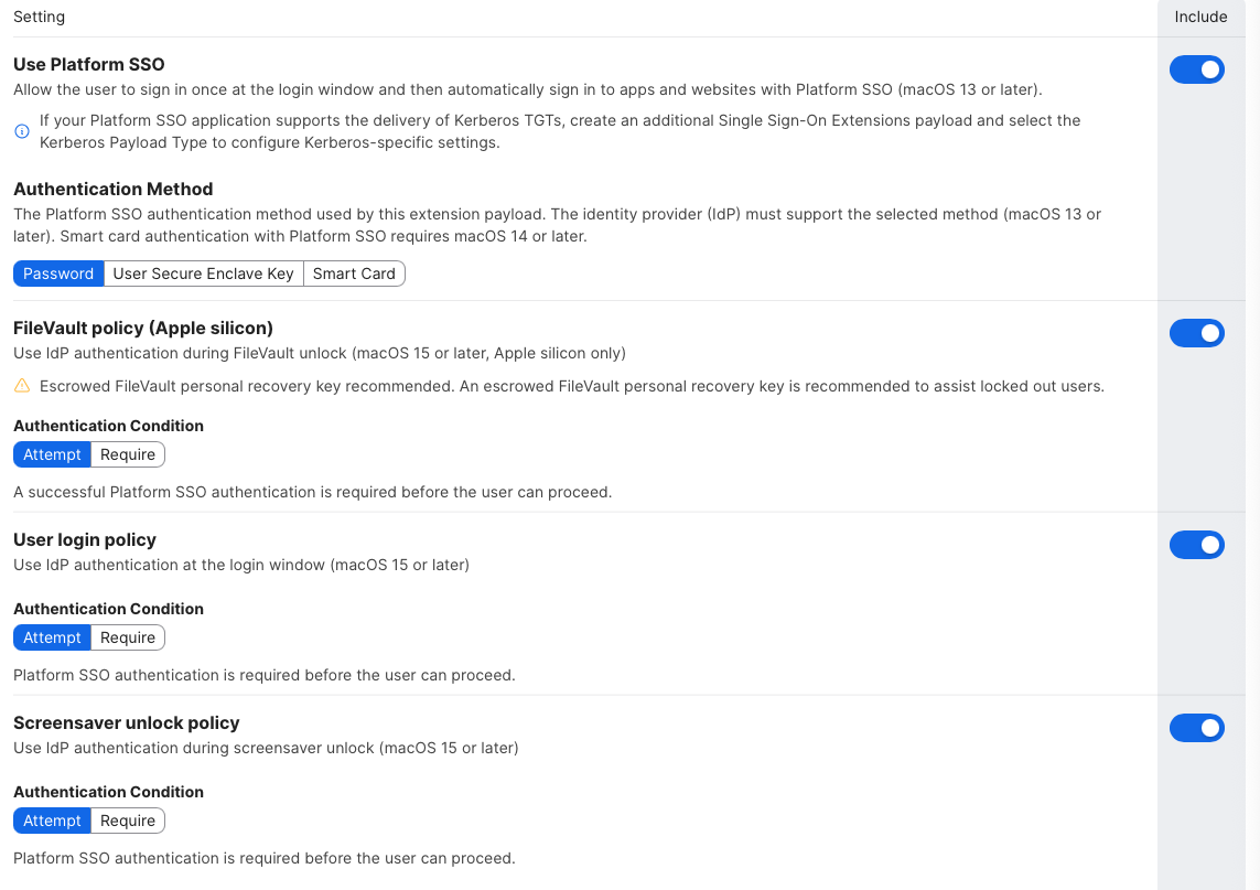 Use Platform SSO: Include